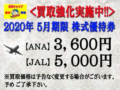 2020年5月期限 株式優待券 買取強化実施中です!